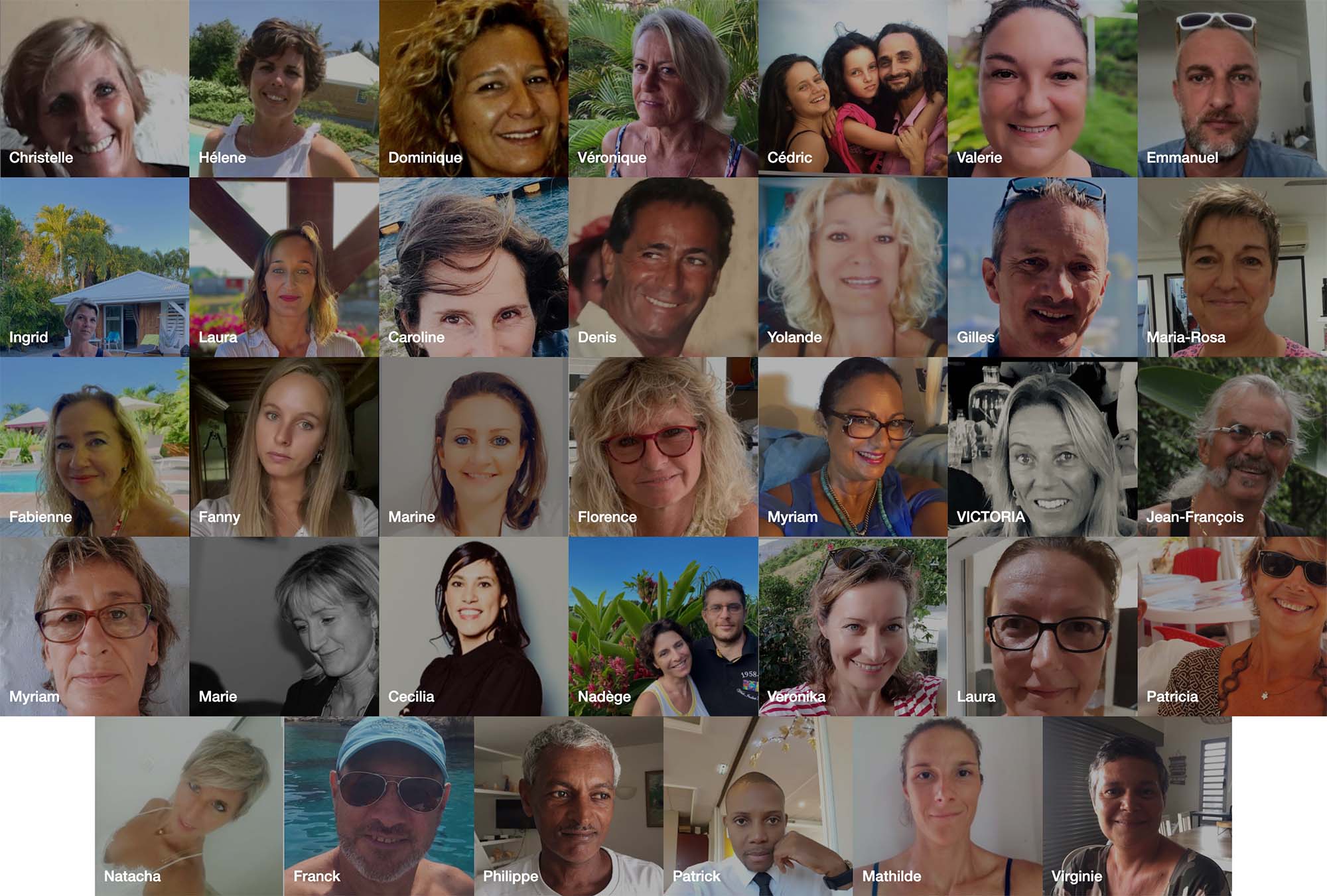 Alain, Cécile, Jean-Philippe, Kelly, Kévana, Sandra, Sébastien, Thomas
